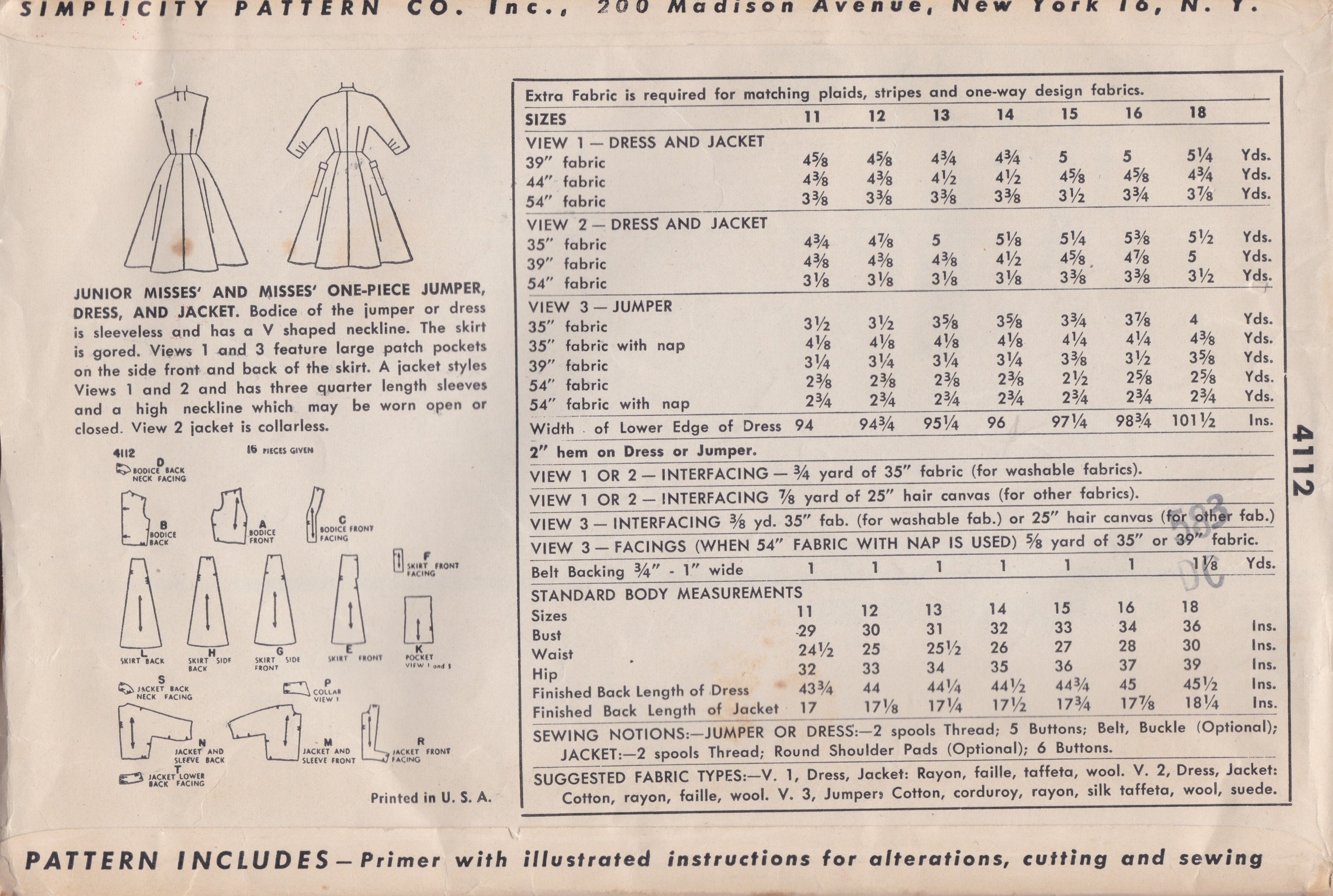 Simplicity 4112 Vintage 1950s Sewing Pattern Dress Jumper Etsy Osterreich